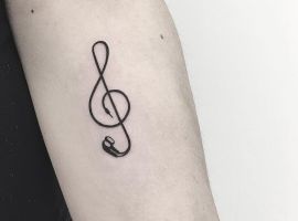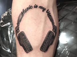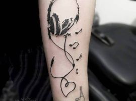 Значення татуювання навушники – це любов до музики. Багато хто з нас не уявляює собі життя без музики, а забути вдома навушники – рівносильно трагедії. Коли ми слухаємо улюблені мелодії, вони занурюють нас в інший стан, інший настрій або в мрії. Тому для багатьох навушники – це головний предмет щоденного використання. Тому, побачивши таке тату на шкірі людини, можна відразу сказати, що вона – меломан і можливо, її життєва діяльність пов’язана з музикою. Це може бути діджей, звукорежисер, музикант і тп..