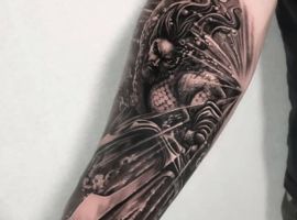 Нептун, Посейдон і Аквамен – це різні персонажі, яких об’єднує вода. Всі вони є володарями морів. Саме таких персонажів часто вибирають в якості тату. Це обумовлено не тільки їх могутнім виглядом, але і загальним значенням:
