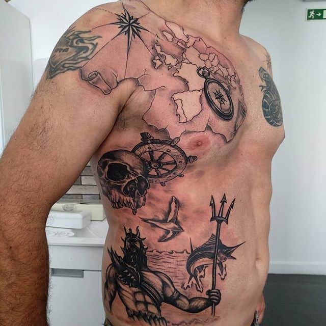Тату у вигляді Нептуна, Посейдона або Аквамена таїть в собі чоловічу енергію.