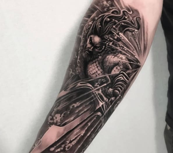 Нептун, Посейдон і Аквамен – це різні персонажі, яких об’єднує вода. Всі вони є володарями морів. Саме таких персонажів часто вибирають в якості тату. Це обумовлено не тільки їх могутнім виглядом, але і загальним значенням: