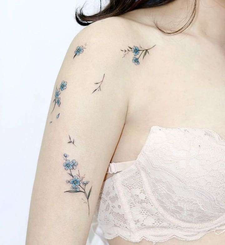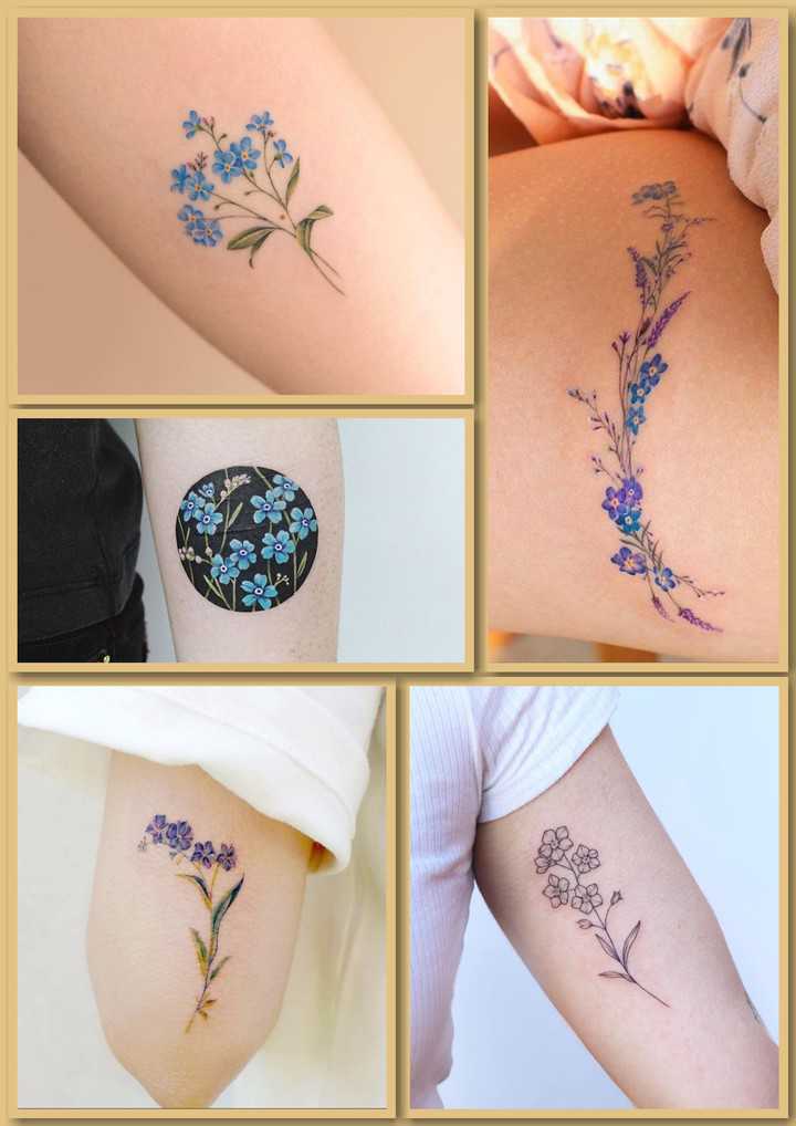 Як правило, такий малюнок переважно вибирають саме дівчата. Наносять його на жіночні ділянки шкіри, ключицю, передпліччя. І частіше виконують саме в кольоровому варіанті, адже незабудка впізнавана саме своїм блакитним або синім кольором. Такі татуювання зазвичай роблять невеликими, щоб виглядали вони витончено і ніжно.