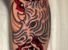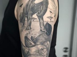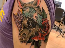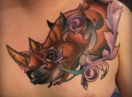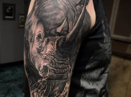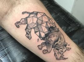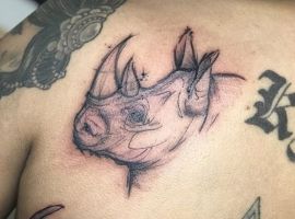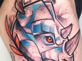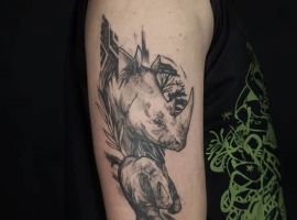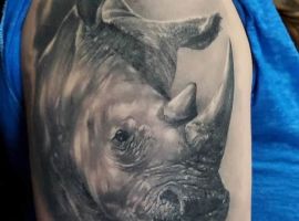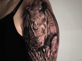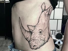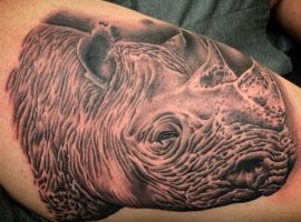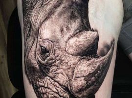 Татуювання носоріг – вибір переважно чоловіків. Таке зображення на тілі говорить про завзятість, мудрость, витримку. Татуювання з носорогами можуть виконуватися в абсолютно різних техніках, але в будь-якому випадку малюнок буде оригінальним і привабливим.