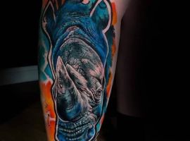 Татуювання носоріг – вибір переважно чоловіків. Таке зображення на тілі говорить про завзятість, мудрость, витримку. Татуювання з носорогами можуть виконуватися в абсолютно різних техніках, але в будь-якому випадку малюнок буде оригінальним і привабливим.