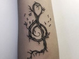 Таким чином, татуювання скрипковий ключ і нота майже завжди є ознакою творчої людини, що за допомогою татуювань хоче висловити свою прихильність до музики або творчості в загальному.