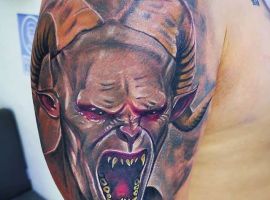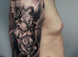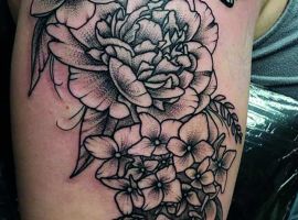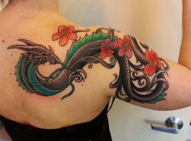- Татуювання на плечі. Чоловіки вважають за краще наносити на це місце тату черепа, татуювання дракона, монохромних візерунків в чорному кольорі, татуювання скорпіона, тату ангела, татуювання єнота. Особливо ексцентричні особи вибирають зображення диявола, тату смерть. Популярні жіночі татуювання на плечі: тату колібрі, татуювання кішок, татуювання пташки, зображення квітів, тату орхідея, татуювання Ловець снів, тату кажана, татуювання тюльпан.