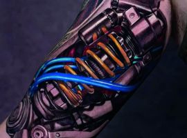 - Тату біомеханіка. Найбільш сучасний і оригінальний малюнок. Татуювання біомеханіка є переплетенням малюнка механічних деталей і шкіри. Часто в такому стилі роблять татуювання рукав.