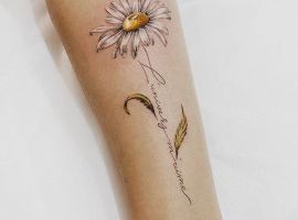 - Жіноче значення тату ромашка. Символізує чистоту. Значення татуювання ромашка в іншій інтерпретації – захист, тому її часто наносять в якості оберега від злих людей.
