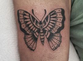 Татуювання з метеликом в стилі олд-скул символізує життєвий шлях і духовний розвиток.