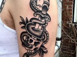 Стиль олд-скул – нестаріюча класика в світі татуювань. Татуювання олд скул чорно білі не втратили свою актуальність протягом більше сотні років існування. Які сюжети в монохромному виконанні залишаються популярними в наш час, буде розказано далі.