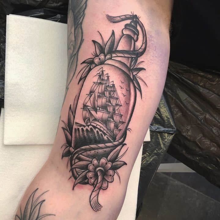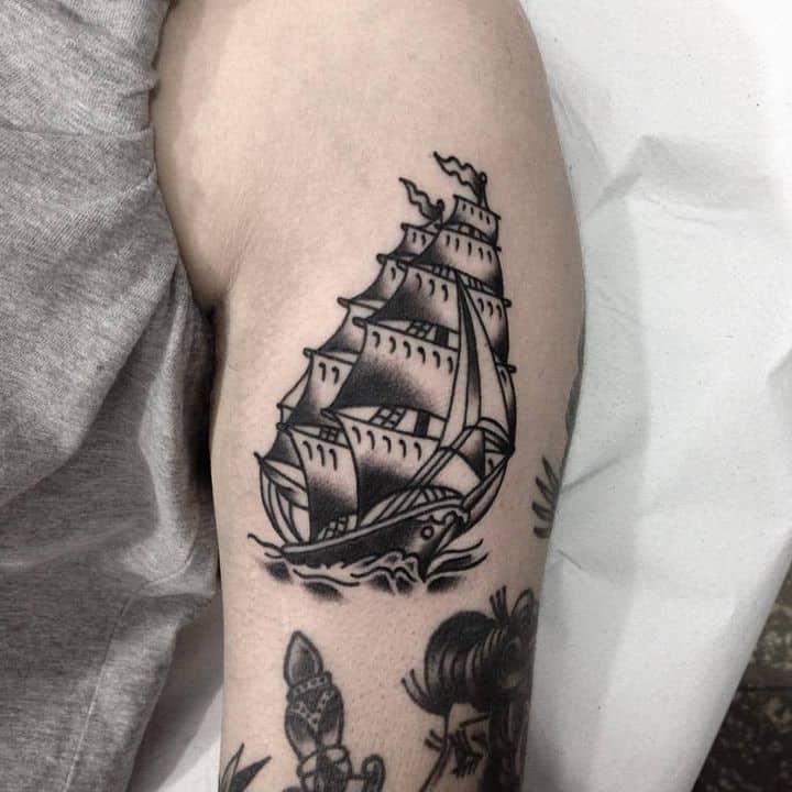 Нерідко мандрівники наносили на шкіру образи кораблів. Цей символ уособлював свободу і рух вперед. В даний час татуювання з морською тематикою можуть вибирати не тільки люди, безпосередньо пов’язані з мореплавством. Однак натільний малюнок з кораблем зазвичай набивають шанувальники традицій.