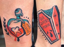 Цей стиль вирізняється своєю лаконічністю та графічністю, що робить його впізнаваним з першого погляду. Головна характеристика – грубі чорні контури, які не лише підкреслюють форму, а й забезпечують довговічність малюнка, адже з часом вони не розпливаються. Кольорова гама обмежена базовими відтінками: чорним для основи, червоним для пристрасті, жовтим для оптимізму, зеленим для надії та синім для спокою. Така палітра створює контраст, роблячи тату яскравими без зайвої реалістичності.
