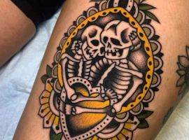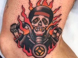 Одним з найбільш популярних олдскульних символів, є тату череп. У всіх культурах він символізував смерть і нагадував про швидкоплинність людського життя.