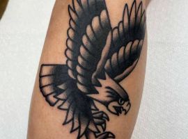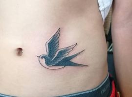 - Ластівки: Вони уособлюють свободу та удачу, адже ці птахи завжди знаходять шлях назад, символізуючи повернення з мандрів. У минулому ластівку татуювали після подолання тисяч миль, як знак досвіду. Нині вона означає надію на кращі дні, легкість у подоланні перешкод і вірність традиціям. Ластівки часто зображують у польоті, що додає динаміки.