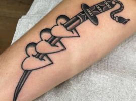 - Серце: Найемоційніший елемент, що втілює любов, пристрасть і зв’язки. Серце може бути пронзеним чи з написом, показуючи глибокі почуття чи рани. Воно нагадує про близьких, роблячи тату емоційним якорем у житті. Серця часто поєднують з стрілами чи квітами для повнішої історії.