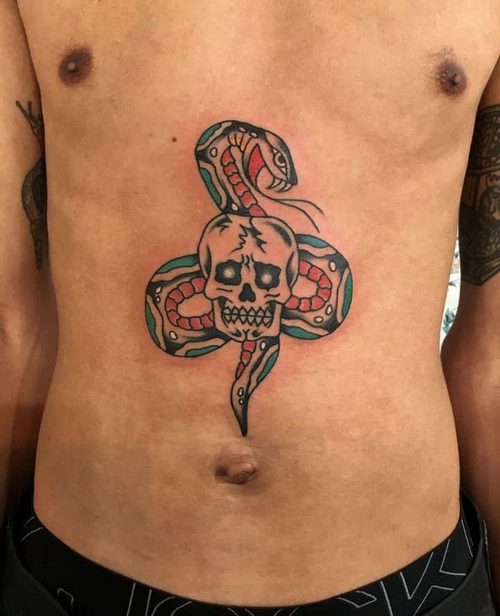 Одним з найбільш популярних олдскульних символів, є тату череп. У всіх культурах він символізував смерть і нагадував про швидкоплинність людського життя.