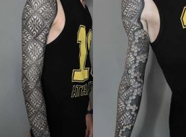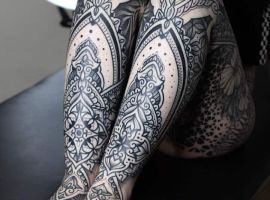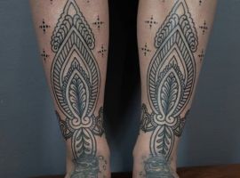 Незвичайні візерунки, що переплітаються і покривають велику ділянку на тілі – це тату в стилі орнаментал. Часто люди в Києві вкладають в нього глибокий сенс, але іноді це просто прикраса. Являє собою татуювання орнамент та візерунки, лінії, рослинні мотиви, що химерно переплітаються.