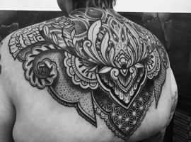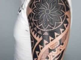 - Мандала – популярний візерунок, що символізує гармонію. Часто робиться таке тату орнамент на плечі. Вважається, що це зображення приносить удачу, обіцяє благополуччя в житті.
