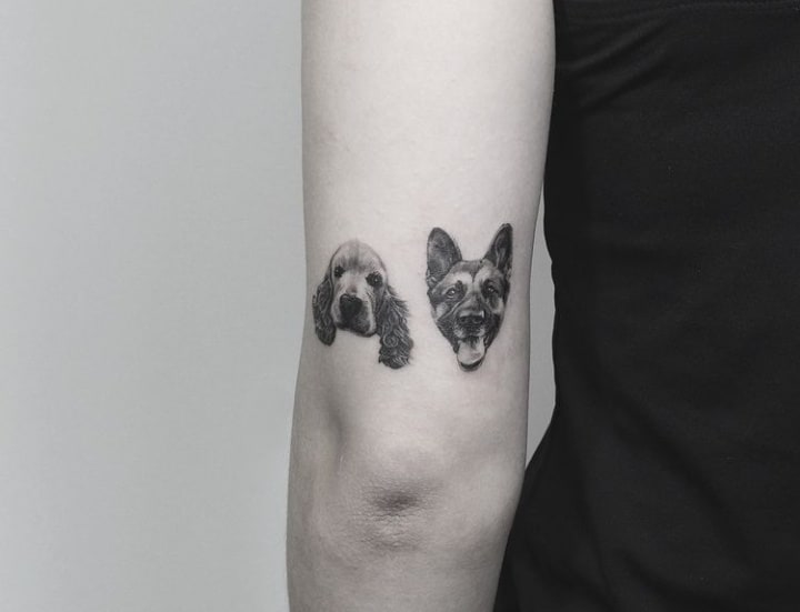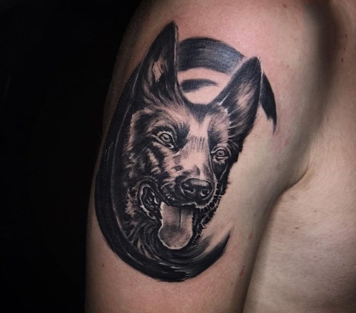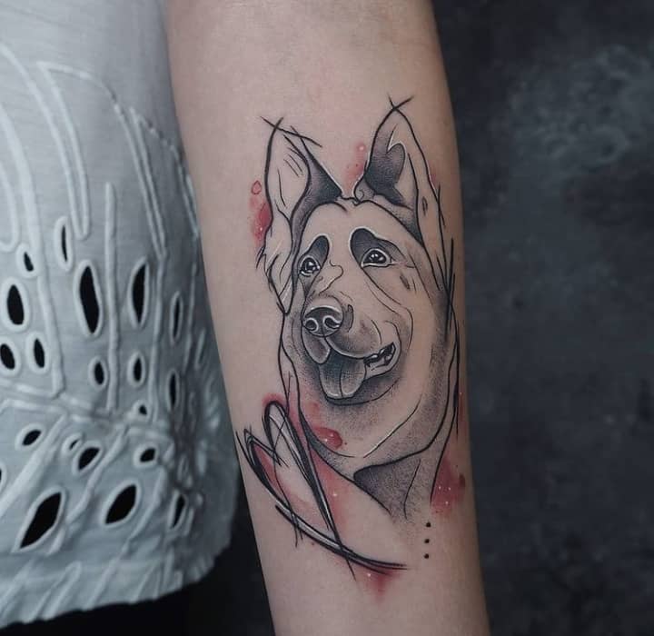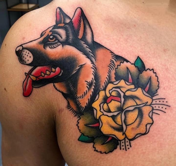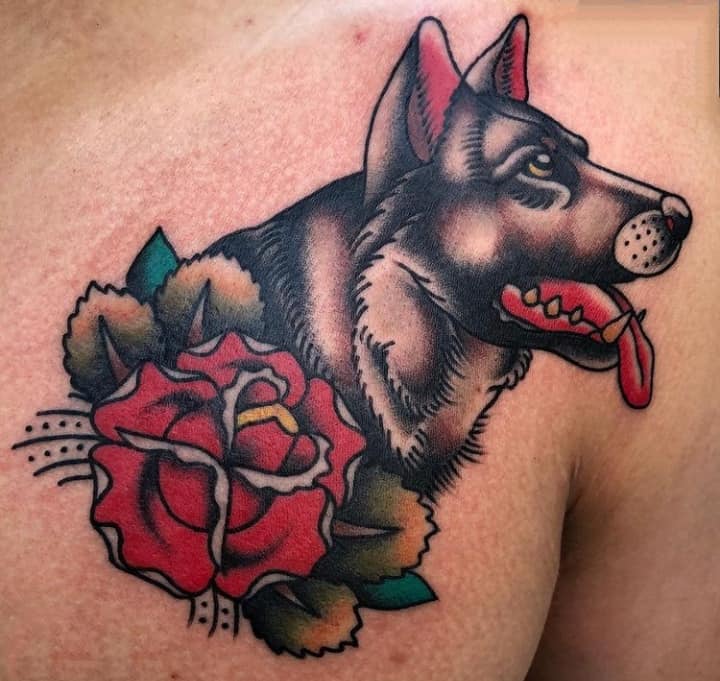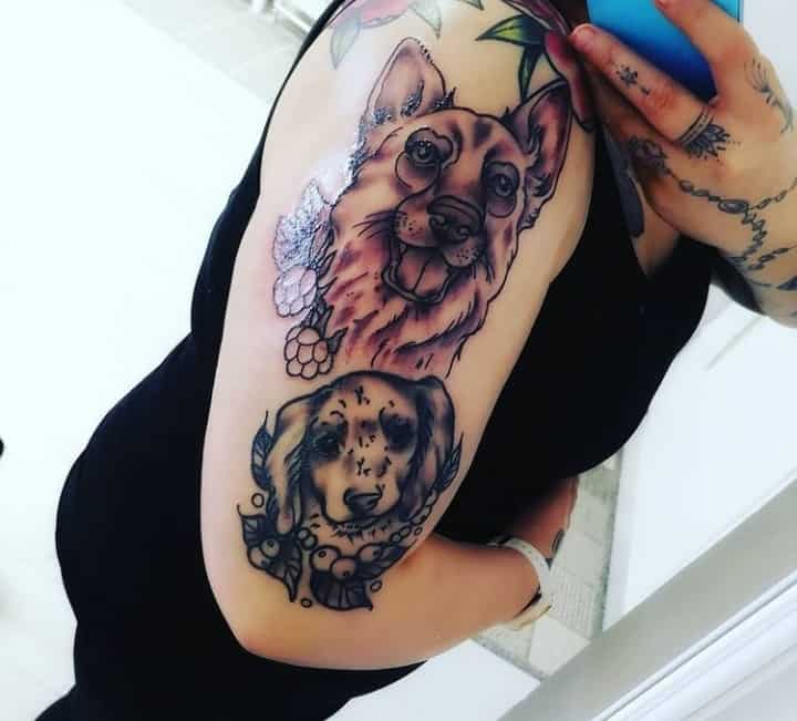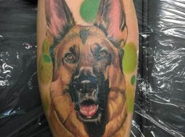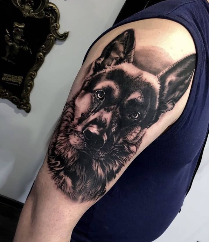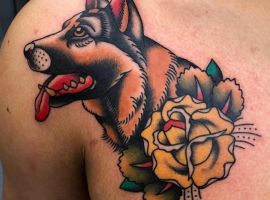 З усіх порід найчастіше в якості татуювання зустрічається саме вівчарка. Спочатку, цю породу вивели в 19 столітті як собаку-пастуха. Але собаки настільки розумні і доброзичливі, що стали просто загальними улюбленцями.