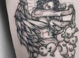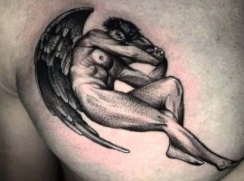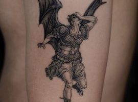 Татуювання з павшим ангелом – відмінний вибір для всіх тих, хто звик плисти проти течії і вважає, що сам є повелителем власного життя. Вибирайте ескіз і вирушайте до майстра, здатного втілити ваші ідеї в життя. А майстри салону Альянс в Києві розробляють абсолютно унікальні ескізи.