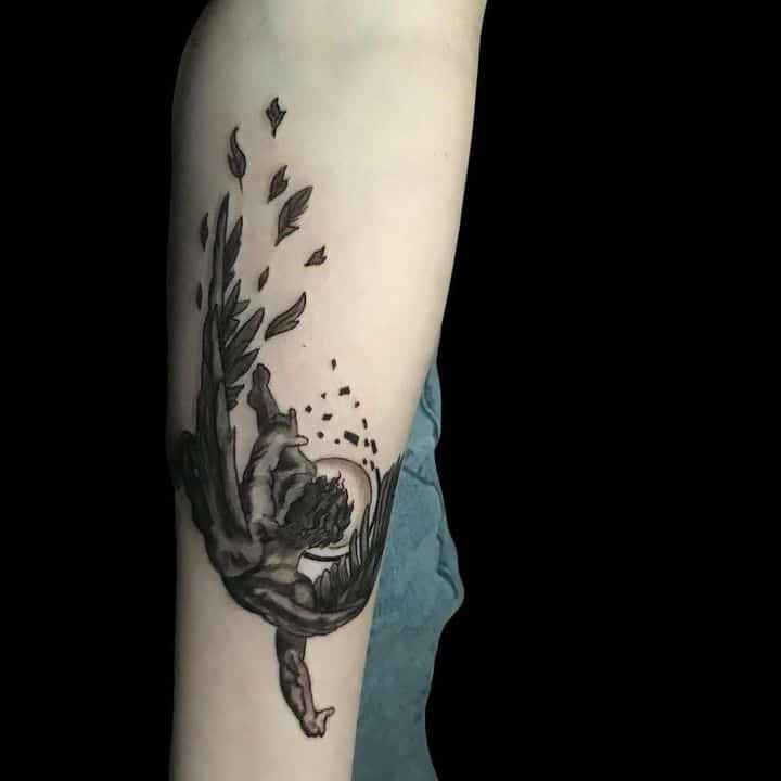 Павший ангел в тату – вельми складний і багатозначний символ. Він може мати такі значення:
