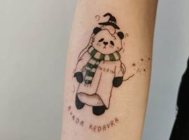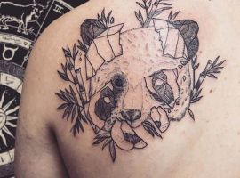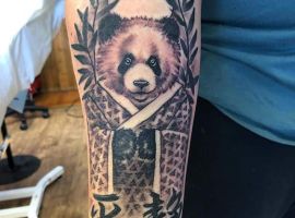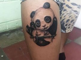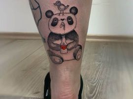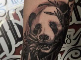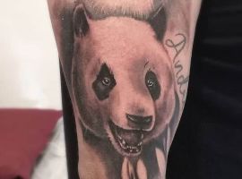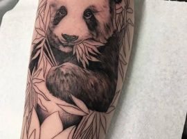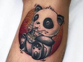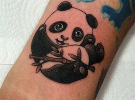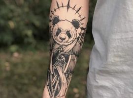 Панда з автоматом – неординарна тату. Вона говорить про те, що хлопець тільки на вигляд здається добродушним і нездатним захищати свої інтереси. Насправді він готовий захищати те, що йому дорого. Татуювання означає: я добрий, але краще не злити.