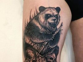 Схожа ідея – це зла панда. Тварини в такому випадку аж ніяк не милі. Означати таке татуювання може те, що людина втомилася бути доброю і тепер відіграється на всіх оточуючих, які заподіяли біль.