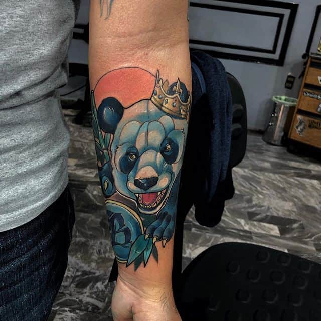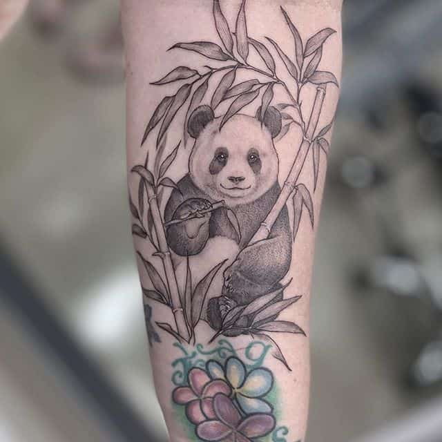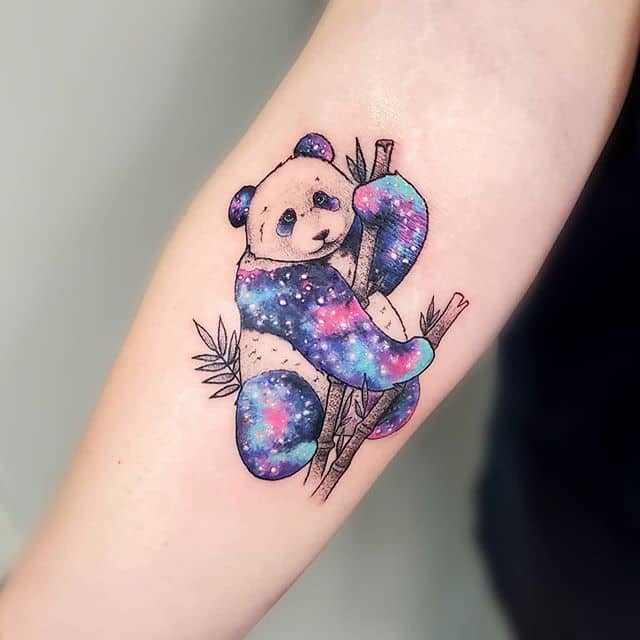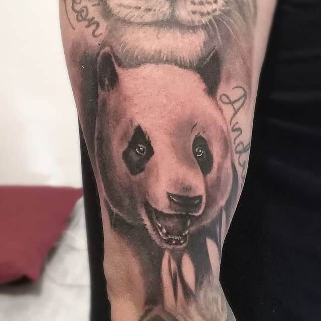 Панди – це милі ведмедики, які бавлять практично кожного. Ці тварини неймовірно харизматичні, тому люди відразу приписали їм і «людські якості». Одне з головних – це неземне чарівність. Тому у татуювання будуть позитивні значення: компроміс, відсутність конфліктів, довіру, м’якість. Але іноді буває не все так просто. Виконані в стилях дотворк, треш-полька татуювання панда або ж тварини з додатковими елементами, наприклад, з автоматом, матимуть аж ніяк не позитивне трактування.