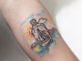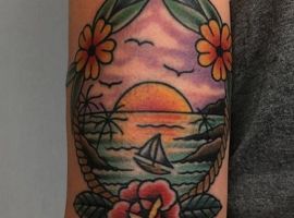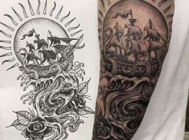 За фото можна зробити реалістичне тату. Малюнок буде нагадувати полотно художника. Зображення доречно доповнити маяком, якорем, компасом, хмарами, морськими тваринами.