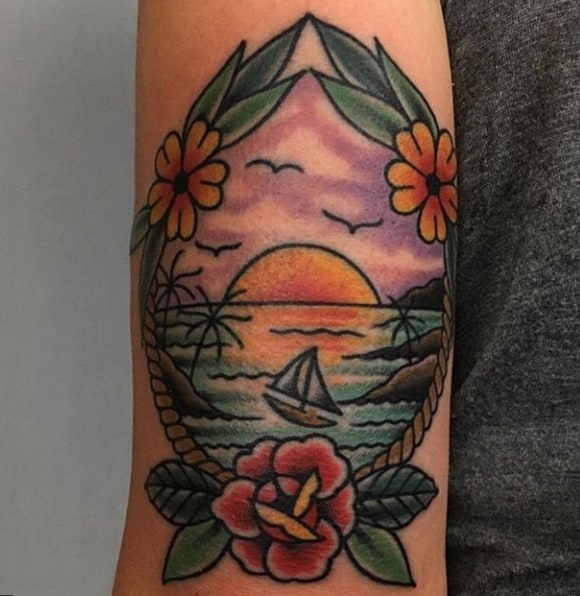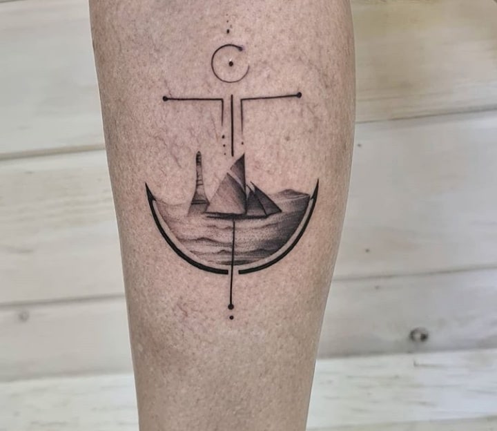За фото можна зробити реалістичне тату. Малюнок буде нагадувати полотно художника. Зображення доречно доповнити маяком, якорем, компасом, хмарами, морськими тваринами.