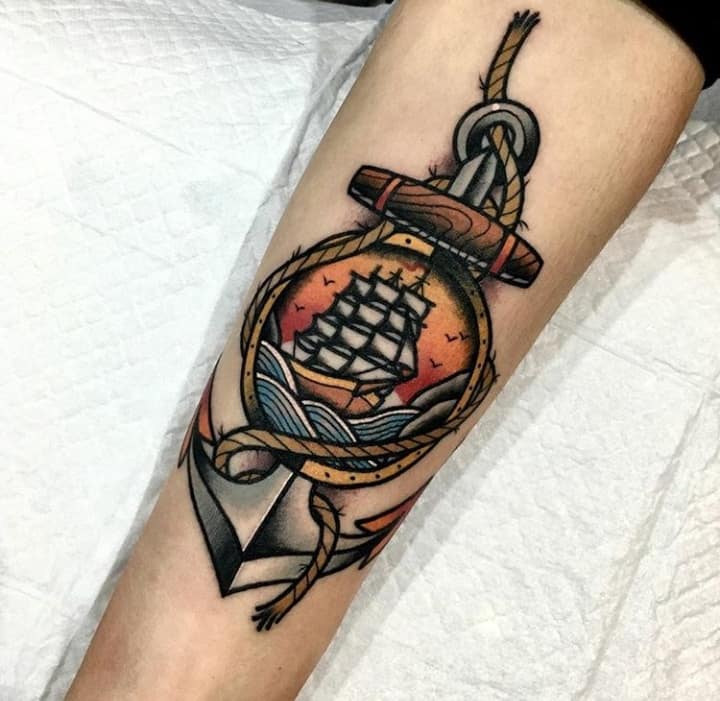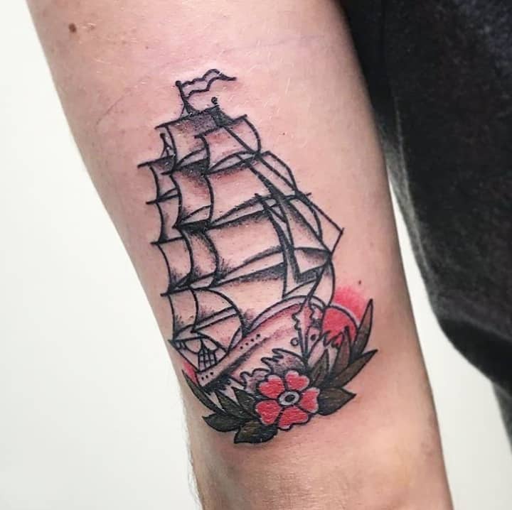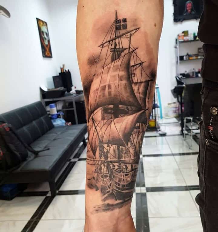 У давні часи татуювання вітрильник наколювали моряки. Цим вони висловлювали нескінченну любов і шанування свободи і моря. Спочатку службовці на флоті наносили зображення з кораблем не заради прикраси, а як відмітний знак. Якщо раптом траплялася Корабельна аварія, то символ підказував, що потопельника потрібно поховати за звичаями флоту. Місцем поховання ставало море. І в наші дні багато моряків бажають, щоб їх після смерті поховали у водній безодні.