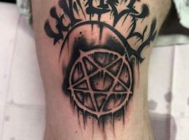 Наші майстри салону Альянс в Києві зроблять якісну тату з подібною зіркою-амулетом Діна і Сема від одержимості з серіалу, а також будь-яку іншу за індивідуальним ескізом.