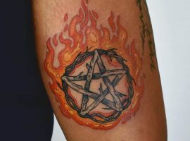 Часте значення у пентаграми татуювання – це зв’язок з магією. Цей символ виступає знаком, за яким можна ідентифікувати зв’язок людини з певною таємною спільнотою. Пентаграма татуювання виступає захистом, оберегом від дії темних сил.