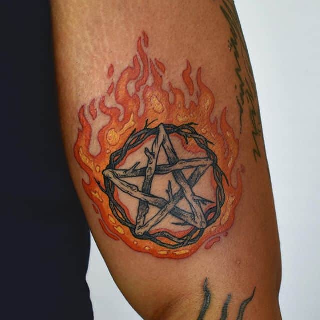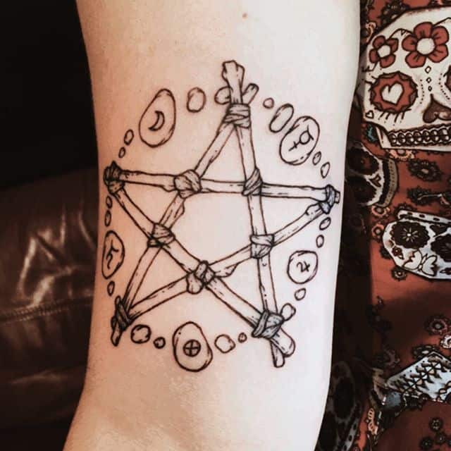 Часте значення у пентаграми татуювання – це зв’язок з магією. Цей символ виступає знаком, за яким можна ідентифікувати зв’язок людини з певною таємною спільнотою. Пентаграма татуювання виступає захистом, оберегом від дії темних сил.