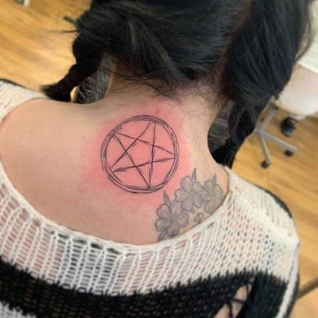 Варто відзначити те, що трактування пентаграми тісно пов’язане з місцем нанесення. Якщо, наприклад, тату пентаграма на шиї, то тут все однозначно. Класична зірка, в якій вершини розташовані вгору, означає віру в Бога, захист від темних сил. Перевернута пентаграма, вершини в якій спрямовані вниз, означає чаклунство і причетність до окультизму.