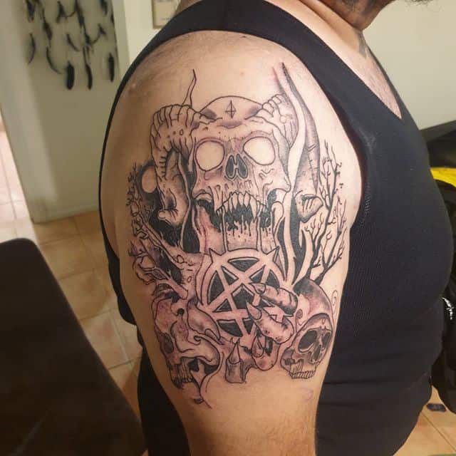 Якщо хочеться страхітливу татуювання, то як не можна краще підійде стиль трайбл, біомеханіка або стімпанк. В такому випадку тату стає як би частиною тіла. Тату в стилі треш-полька підійде тим, хто хоче виконати дійсно сатанинську тату. Малюнок доповнюють патьоками, червоною фарбою, страхітливими деталями.