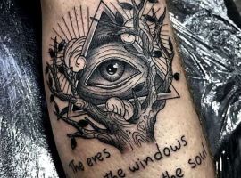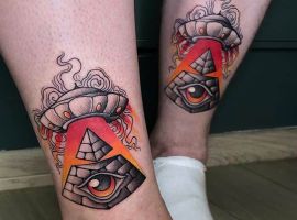 Ідей зображення такого малюнка на тілі можна знайти дуже і дуже багато. Досить часто можна зустріти ескіз, на якому по центру піраміди розміщують Всевидяче око. Тату Всевидяче око наповнене глибоким змістом і саме по собі, окремо. Воно може символізувати всюдисущого Господа, Трійцю, мудрість, духовне начало і свідомість людини, яка вибрала для себе такий малюнок. Вважається, що такий варіант татуювання, в такому поєднанні знаків здатне служити в якості сильного оберега і захищати свого володаря від будь-яких негараздів на його шляху.