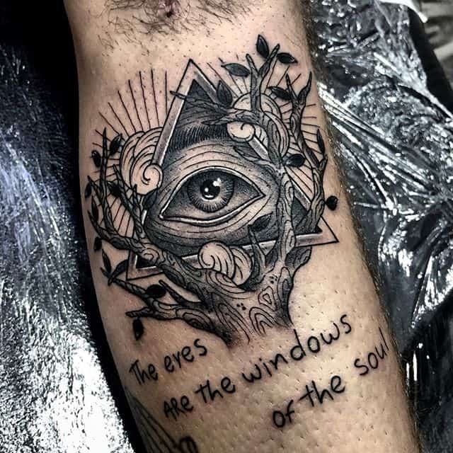 Ідей зображення такого малюнка на тілі можна знайти дуже і дуже багато. Досить часто можна зустріти ескіз, на якому по центру піраміди розміщують Всевидяче око. Тату Всевидяче око наповнене глибоким змістом і саме по собі, окремо. Воно може символізувати всюдисущого Господа, Трійцю, мудрість, духовне начало і свідомість людини, яка вибрала для себе такий малюнок. Вважається, що такий варіант татуювання, в такому поєднанні знаків здатне служити в якості сильного оберега і захищати свого володаря від будь-яких негараздів на його шляху.
