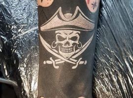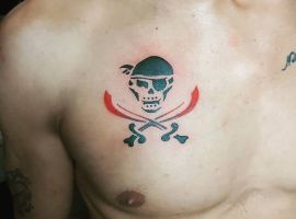 - Головне значення тату пірата – надія на фортуну, а не на працю, пошук легких шляхів. У чоловіків популярне сатиричне тату пірата на руці з трубкою, чорною пов’язкою на оці, папугою на плечі – символ внутрішнього бунту, неприйняття суспільних норм, безладного способу життя. Тату піратка вказує на порочність, небезпеку інтимних зв’язків.