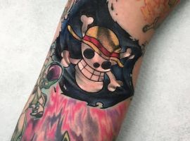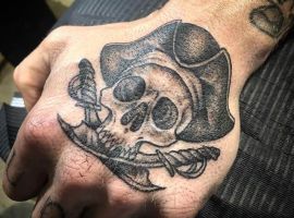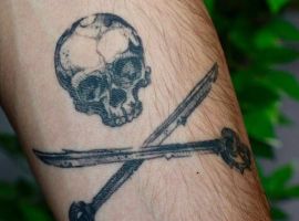 - Тату піратський прапор “Веселий Роджер” – вказівка на небезпеку. Володаря тату на руці краще не чіпати, не дратувати.