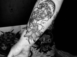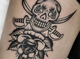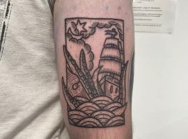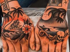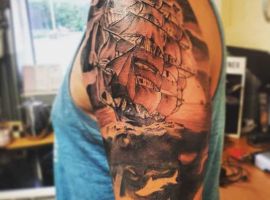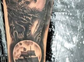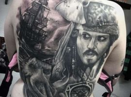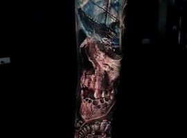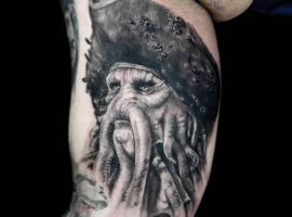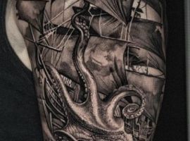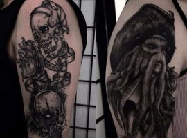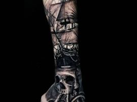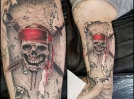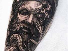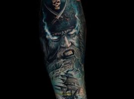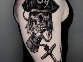 Морські татуювання підходить сміливим, цілеспрямованим, волелюбним. Пірат тату для людини щасливої, спраглої до перемоги, що ризикує по-крупному. Підводні пейзажі, Пірати, кораблі складні у виконанні, особливо в стилі реалізм, тому вибирайте досвідченого татуювальника в нашому салоні в Києві, з хорошими рекомендаціями.