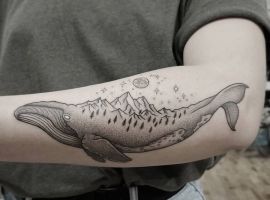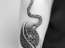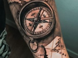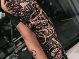 Тим, кому близька морська стихія, варто придивитися до фото татуювань з приморськими і підводними пейзажами, тваринами, що мешкають у воді, корабельними символами: