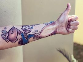 У 50-60-і роки надзвичайно популярний був ескіз тату моряк Папай – герой мультфільму. Сьогодні у молоді нові кумири – Джек Горобець і Гектор Барбосса з «Піратів Карибського моря» – персонажі, що не несуть агресію, швидше символізують азарт, романтику, нерозсудливість. А для дітей популярні морські татуювання – Герої мультфільмів “Губка Боб», “Русалочка”, забавні восьминоги і дельфіни.