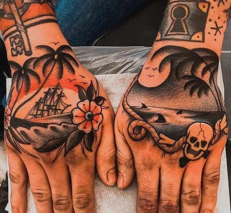 Морська тематика поетична і романтична, завжди притягувала живописців, а тепер і тату-майстрів. Перші татуювання з’явилися у моряків, виконували функцію оберегів в далеких і небезпечних плаваннях. Сьогодні морські татуювання набивають і ті, хто професійно не пов’язаний з морем, але любить водну стихію, володіє волелюбністю. А піратські татуювання обирають азартні і цілеспрямовані люди.