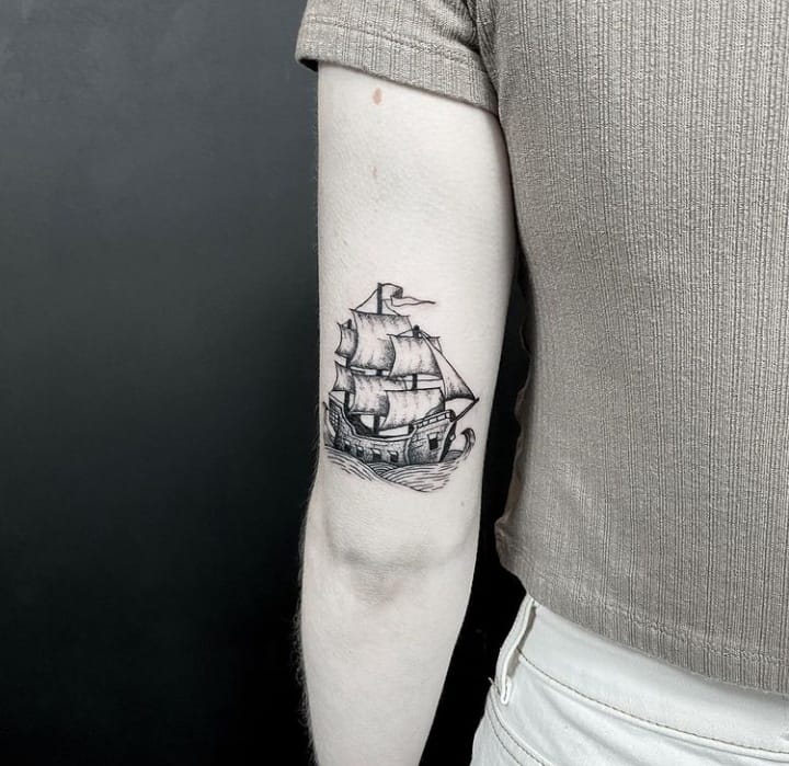 - Піратський корабель вказує на безбашенность, любов до пригод. Ескіз підходить тому, хто часто подорожує, весело проводить час в дружній компанії.