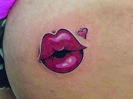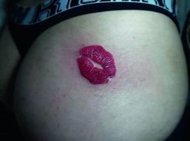 - Тату поцілунок на – це щось інтимне. Зазвичай його наколюють заради хлопця, щоб зробити сексуальне життя цікавіше. Подібне тату на попі виглядає дуже сміливо, але важливо, щоб сідниці були красивими і накачаними.