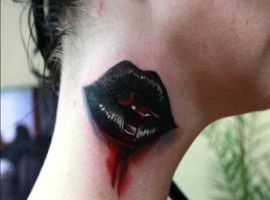 Є можливість створити на тілі не тільки класичне тату з губами, але і оригінальний його варіант. Одним з найоригінальніших, можна вважати варіант у вигляді вампіра з червоними жіночими губами. Подібний поцілунок смерті здатний прикрасити тіло чоловіка і жінки в різному віці.