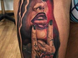 Тату губи на фото виглядають дуже красиво саме в стилі реалізм! У красивій реалістичній роботі є “Легка еротика”, що натякає на внутрішній пристрасний характер жінки. Подібний малюнок на тілі здатний сказати багато про що, якщо правильно зуміти його прочитати… Татуювання губи – це знахідка для тих дам, які хочуть відчути себе особливими і ненав’язливо розповісти про пристрасний характер.