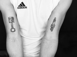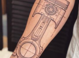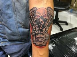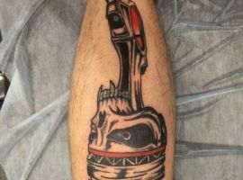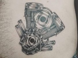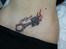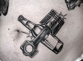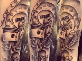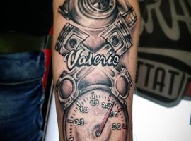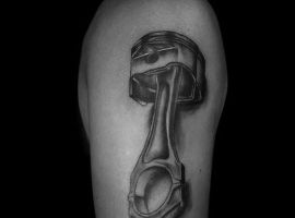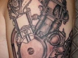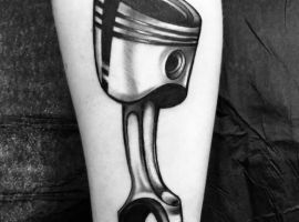 Тату двигун або поршень також підходить для тих, хто не просто захоплюється машинами, але любить екстрим.