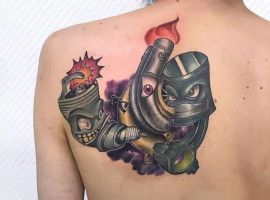 Часто такі татуювання робляться в стилі олдскул, акварель або реалізм. Вони барвисті, об’ємні. Орнаменти, що використовуються для Зображення двигуна, підкреслюють креативність мислення. Такі люди не люблять стереотипів і хочуть виділитися своєю незвичністю.
