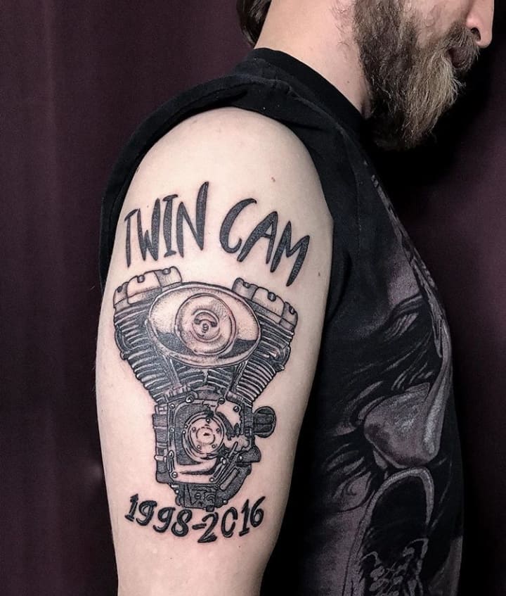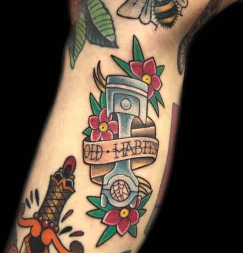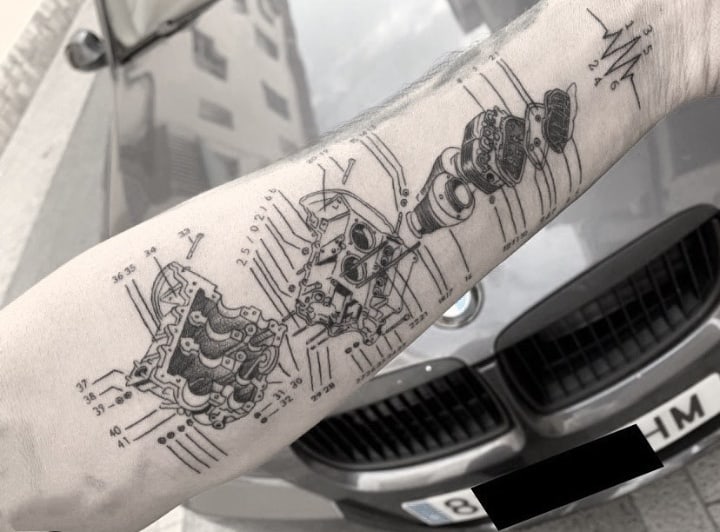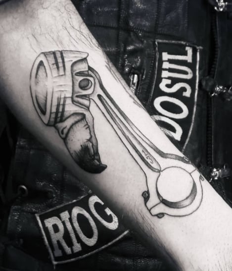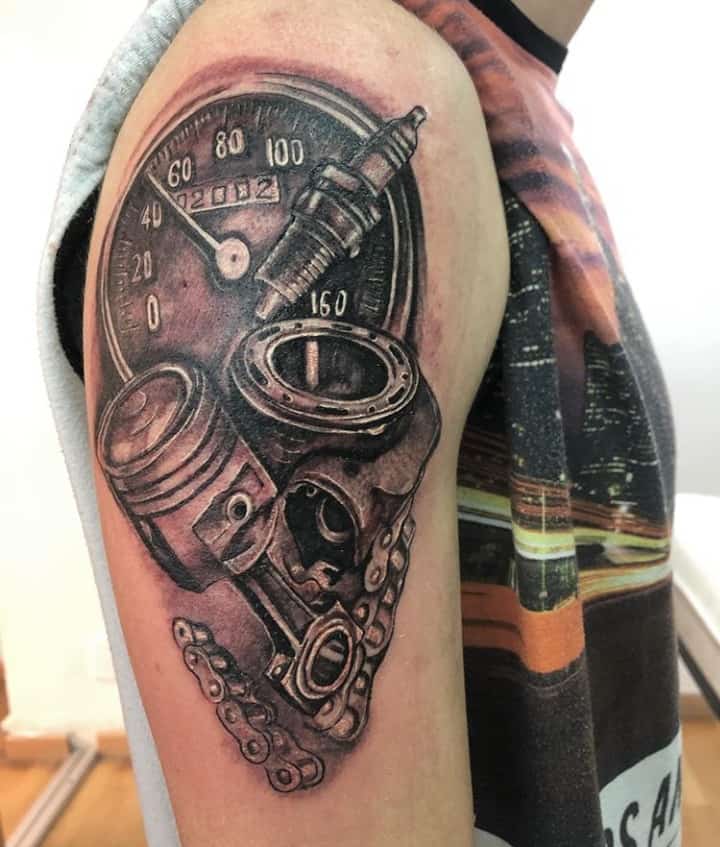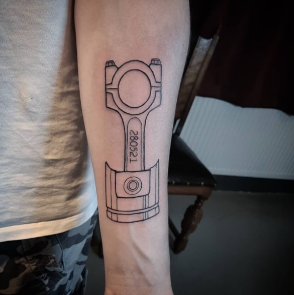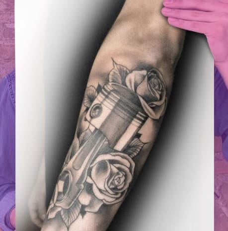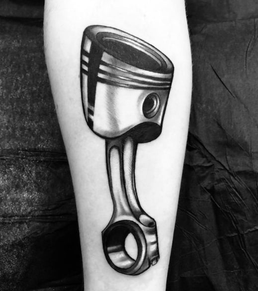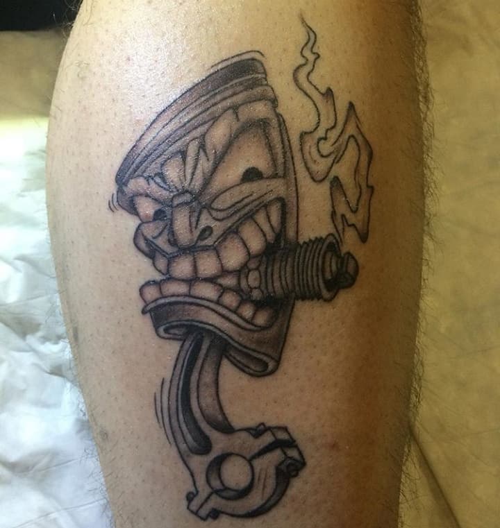 Тату двигун або поршень також підходить для тих, хто не просто захоплюється машинами, але любить екстрим.